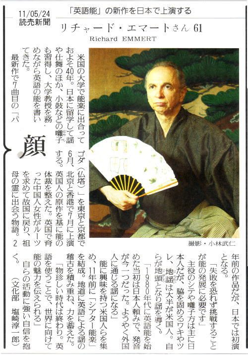 new中国新聞(セレクト)大島衣恵のお能よもつきじ 12 普遍の芸術 英語上演 広がる可能性