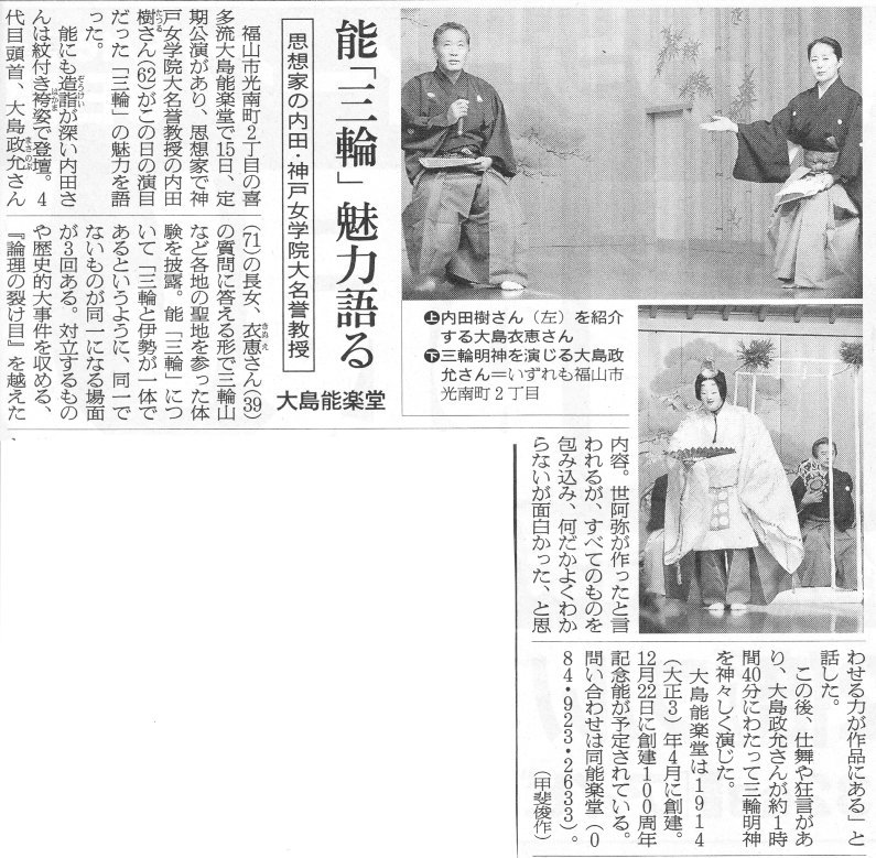 山陽新聞幽玄 しなやかな舞 喜多流大島会が能楽祭