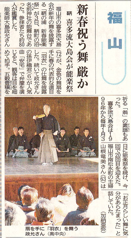 中国新聞新春祝う舞 厳か 鞆 喜多流大島会が能楽祭