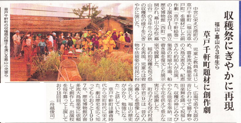 中国新聞草戸千軒の営み 劇で再現 福山 幕山小児童ら熱演